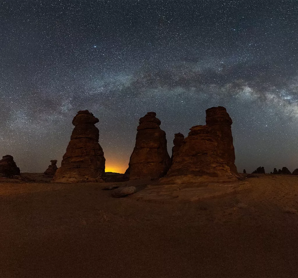 Ollie Taylor has visited some of the darkest places on earth in search of the perfect conditions for night sky astrophotography - taking pictures of the night sky in some enviable locations. The award-winning astrophotographer recently added AlUla to that list, setting up his impressive collection of cameras in the dark sky park of Gharameel. AlUla’s still nights and majestic rock formations offer a perfect canvas for aspiring night-sky shooters or seasoned astrophotographers alike.