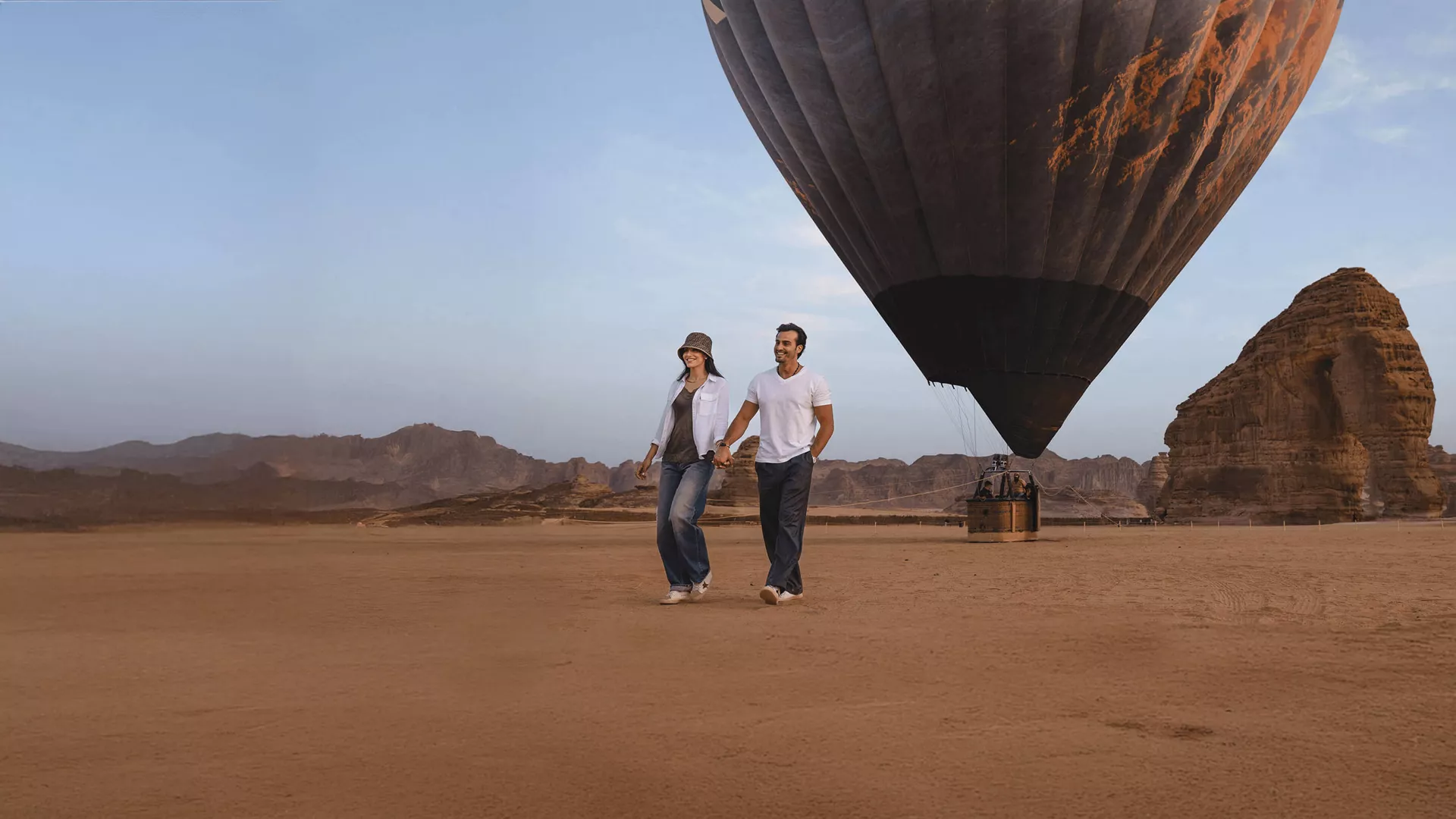Experience AlUla from a new perspective with the Tethered Hot Air Balloon Experience. Gently elevated up to 50 metres into the air, you’ll enjoy wide-reaching views across Al Manshiyah Plaza and beyond - with AlUla’s unique vistas stretching in every direction. This 20-minute ascent is short but unforgettable, giving you a taste of the skies while staying close to the ground.