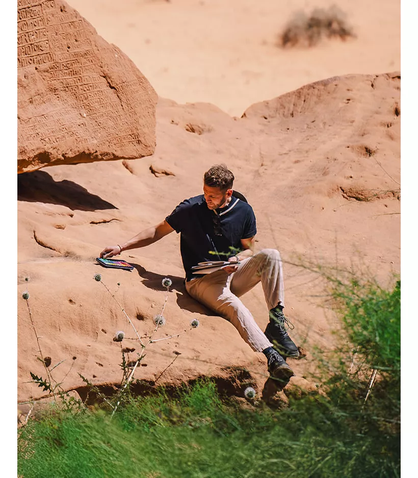 L'histoire est plus qu'une source de connaissances. À AlUla, pour Hugh, elle sert à stimuler les recoins les plus créatifs de son imagination.